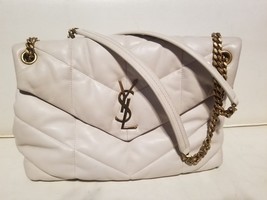 YSL Saint Laurent LouLou Puffer Medium Shoulder Bag Quilted Leather Bone