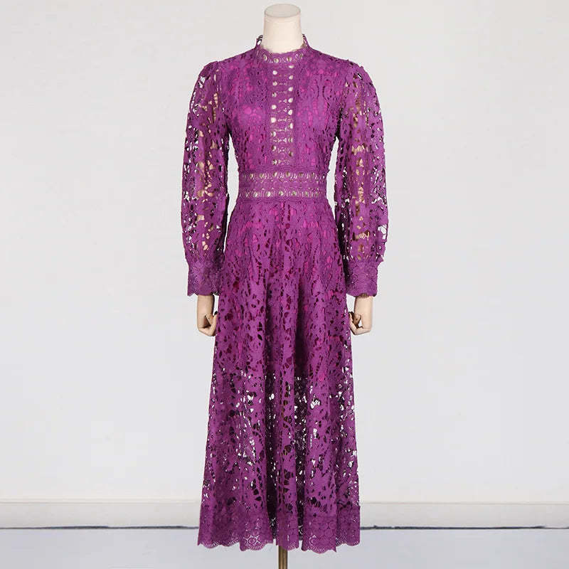 Boho Inspired High Waist Cut-Out Lace Panel Vintage Dress