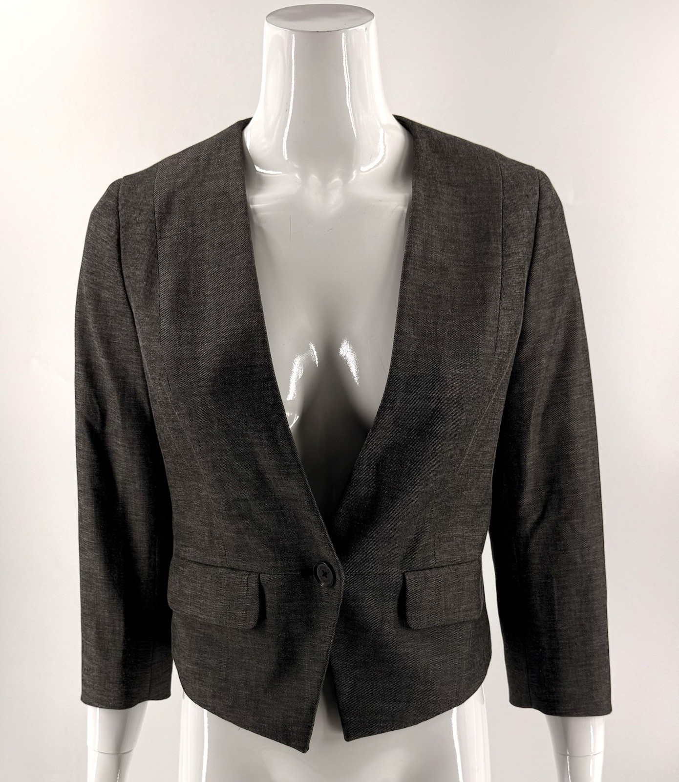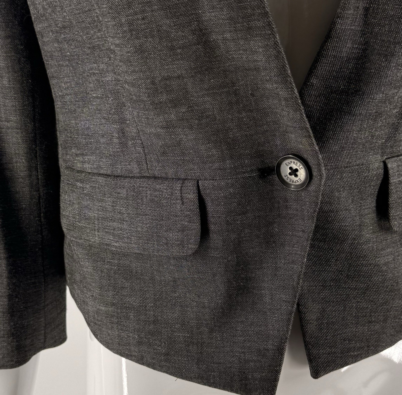 Express Blazer Size 4 Gray Career Suit Jacket Womens One Button 3/4 Sleeve
