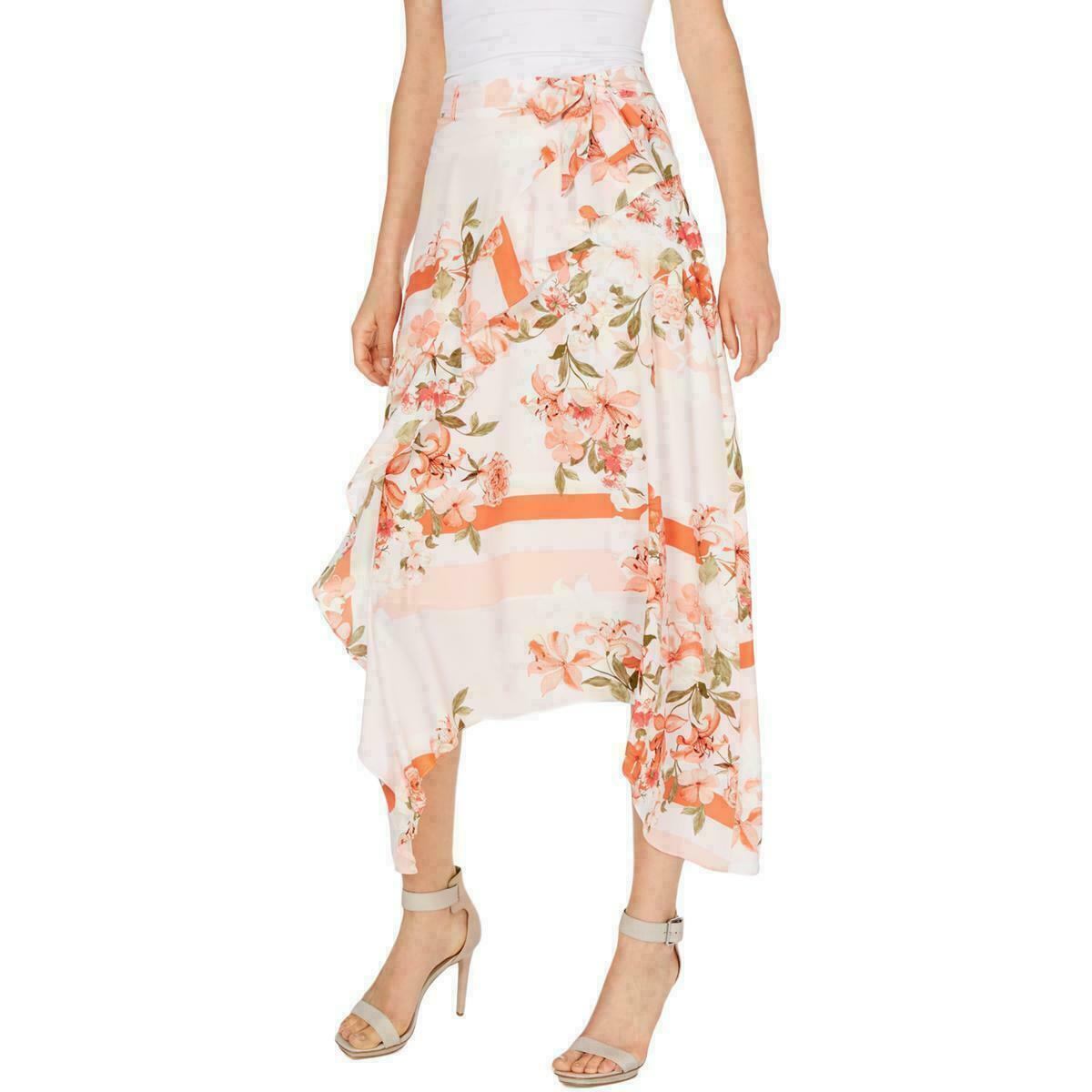 CALVIN KLEIN Ruffle Front Floral Midi Summer Skirt with belt