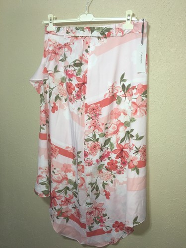 CALVIN KLEIN Ruffle Front Floral Midi Summer Skirt with belt SZ 12 NEW $99