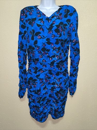 Zara Draped Blue Floral Ruched mini dress SZ and 49 similar items
