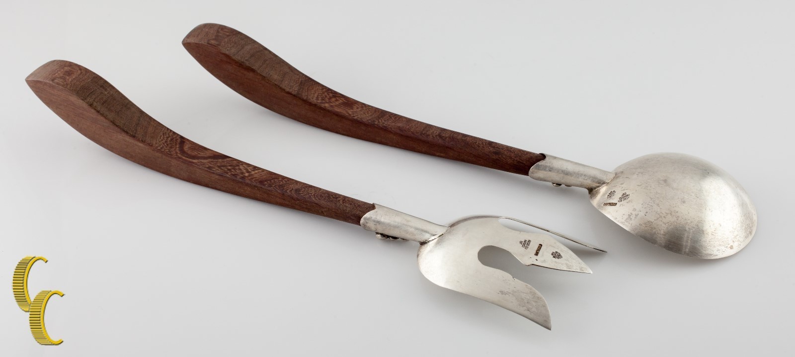 HCV Plata Mexico .925 Sterling Silver Salad Serving Set w/ Wood Handles