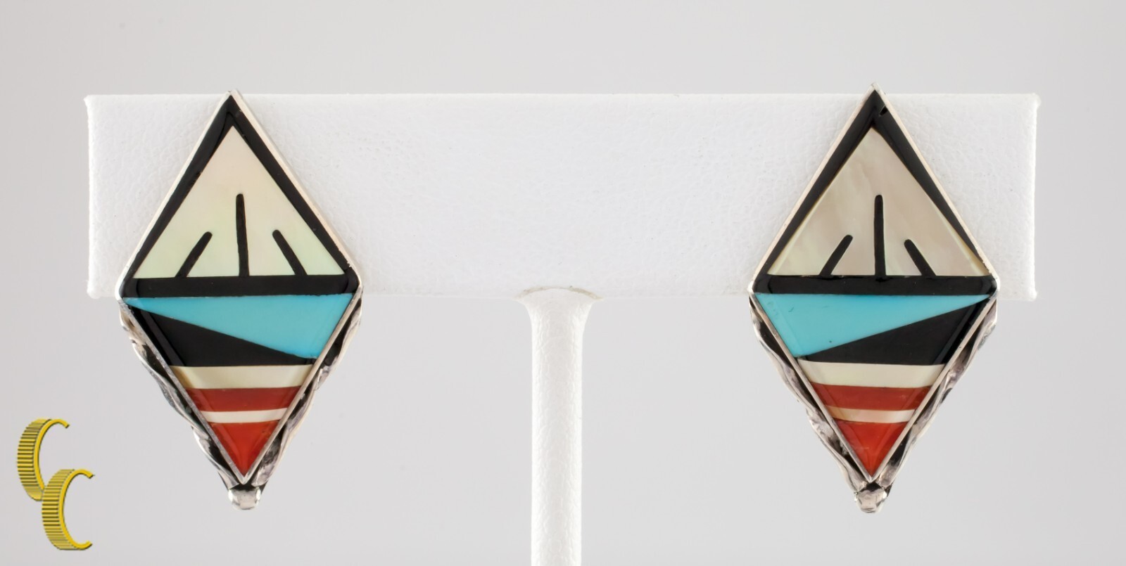 Sterling Silver Lapidary Inlay Diamond Shaped Clip-on Earrings