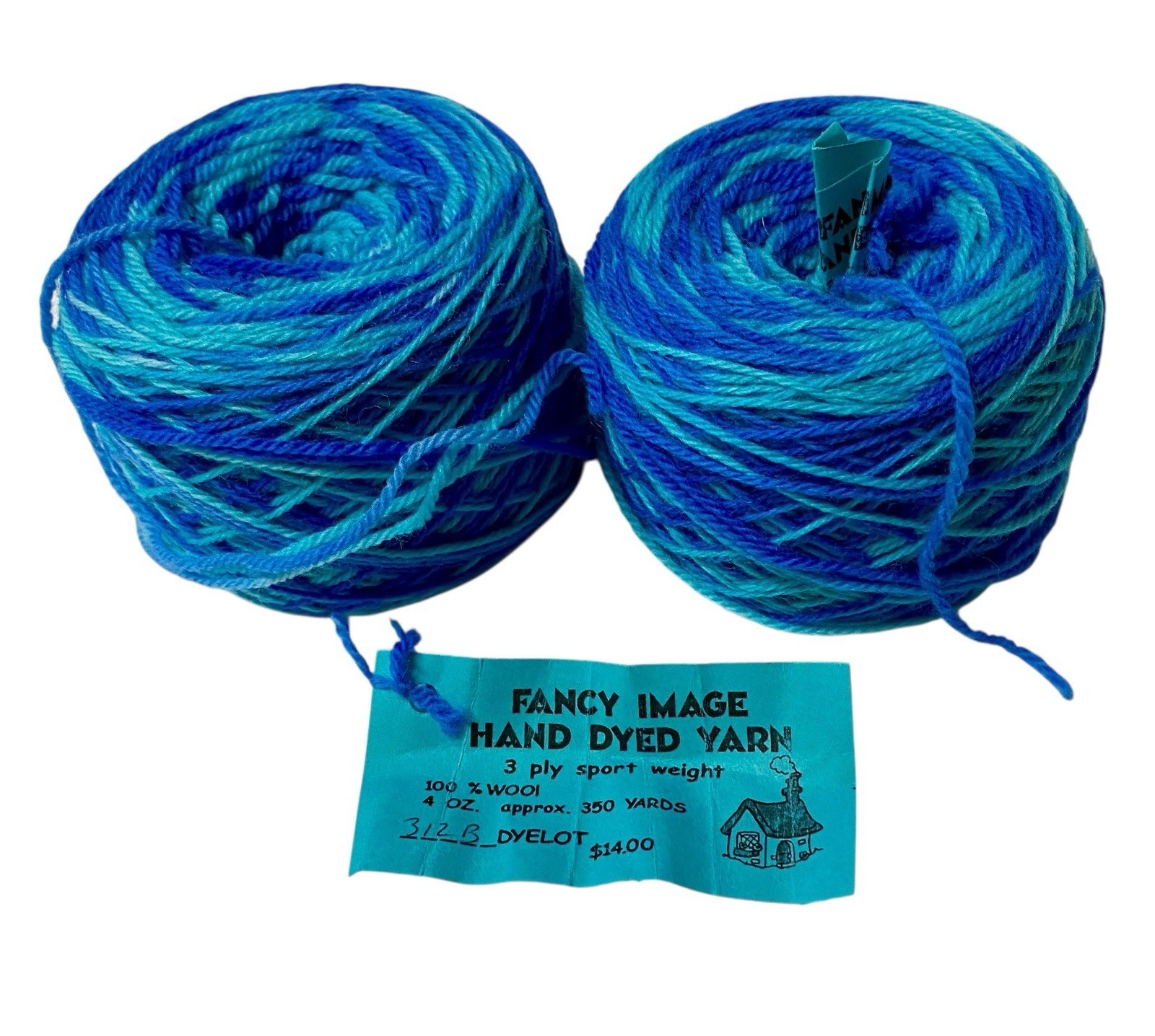 Hand Dyed Yarn Sport Weight Wool 2 Cakes Cobalt Blue Aqua Variegated 4 oz 350 Yd