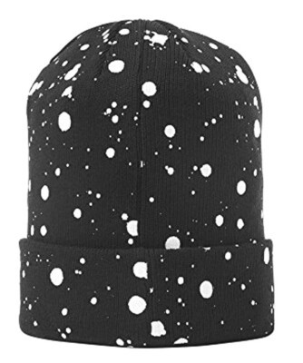 This is for a brand new with tags Dope Couture Printed Black White Paint Splatter Speckle Logo Knit Cuff Beanie Black knit beanie with all over white speckle pattern and bottom fold. * Poly-Cotton