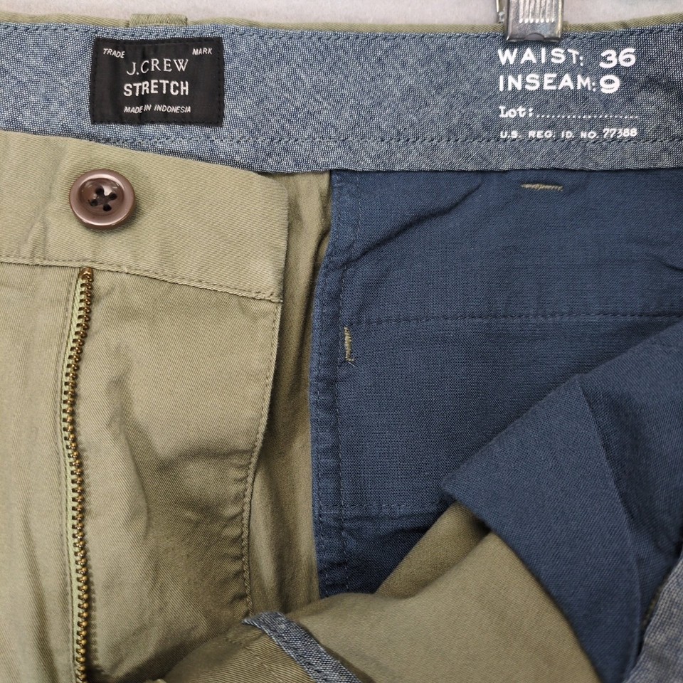 J Crew Men's 36x9 Chino Shorts, Green Stretch Fabric, Classic Preppy Summer