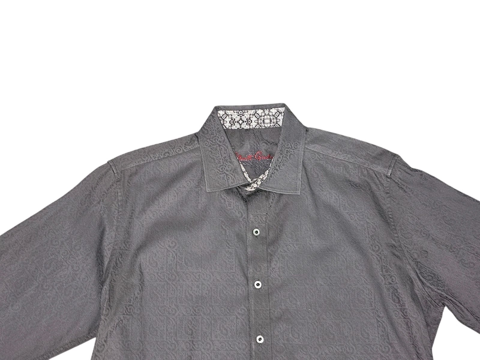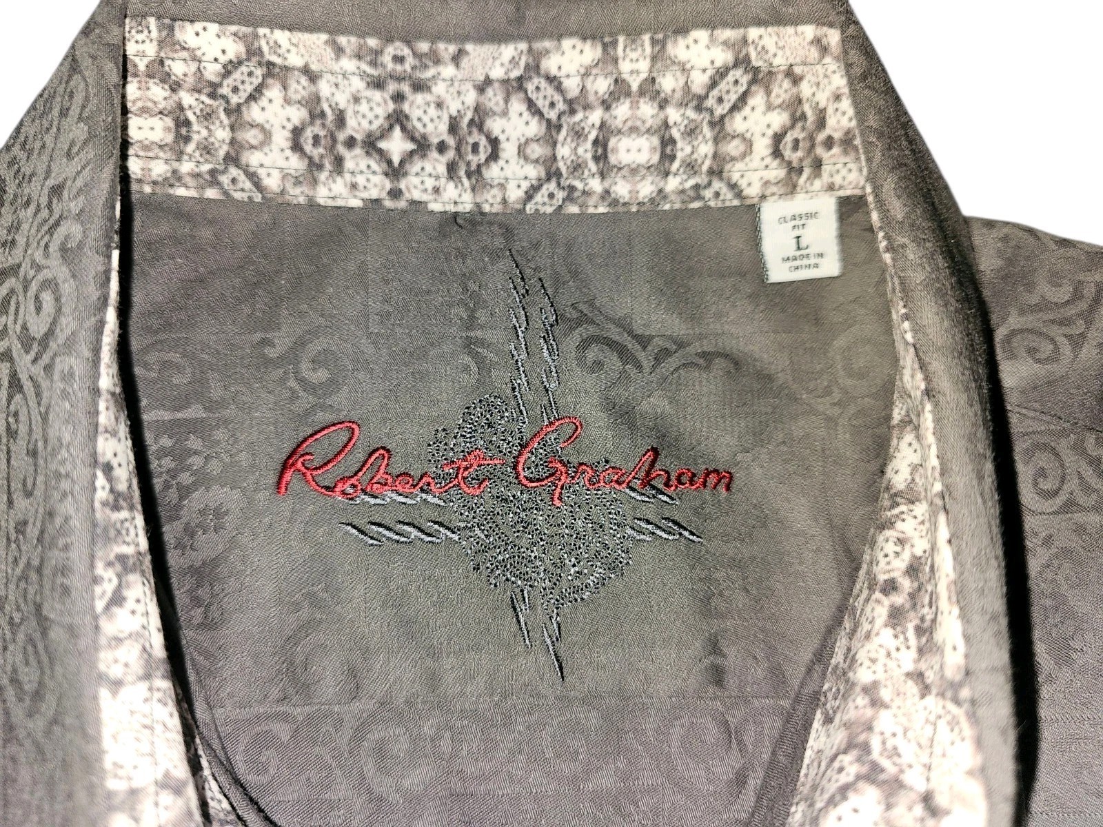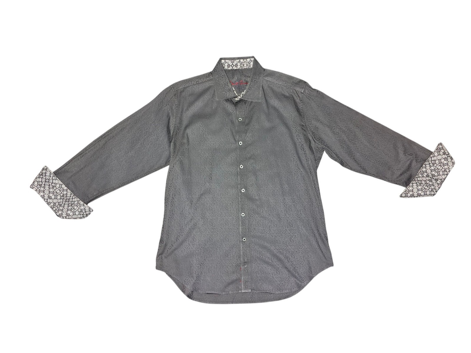 Robert Graham Classic Fit Flip Cuff Collar Paisely Button Shirt Gray Men's Large