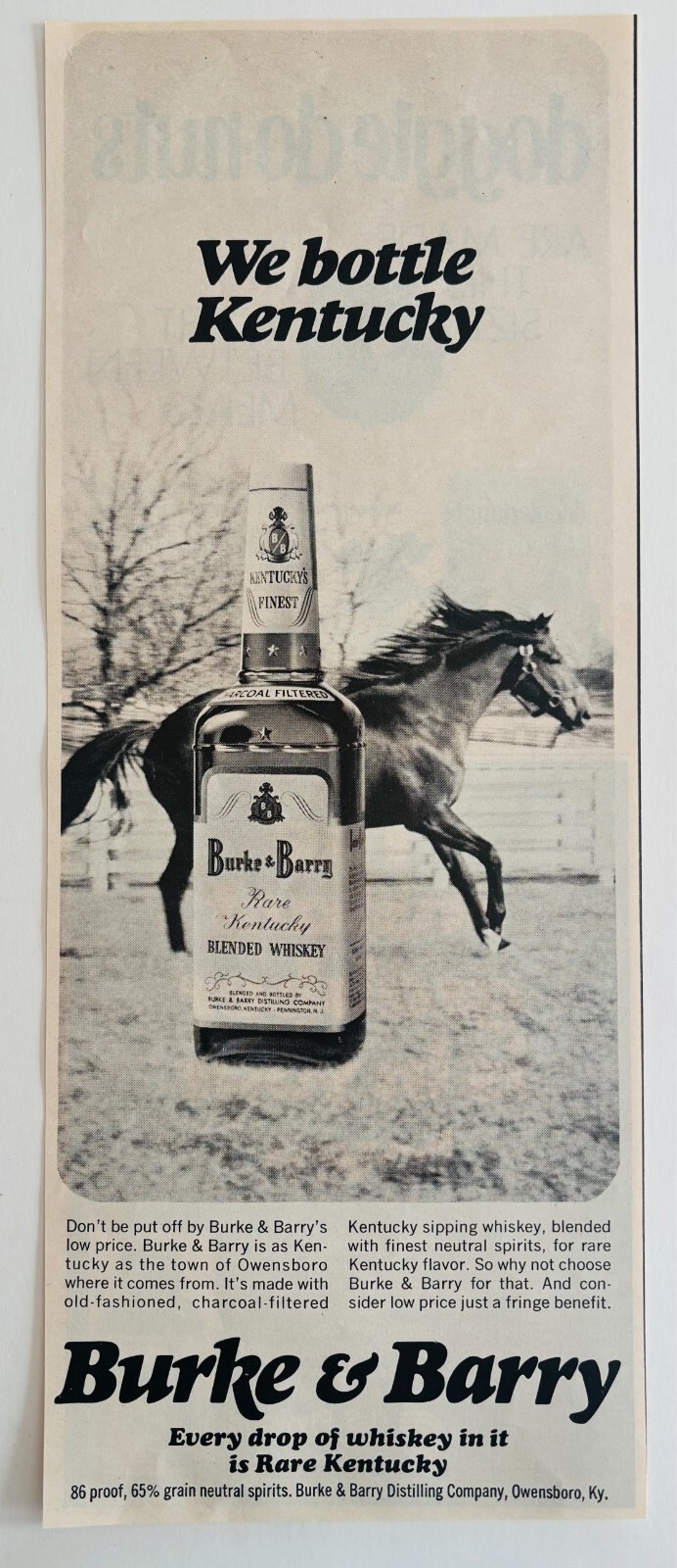 1968 Burke & Barry Kentucky Whiskey Advertisement Vtg Liquor Distillery DWJJ18