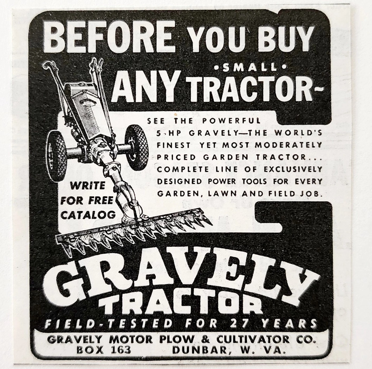 1949 Graveley Motor Plow Garden Tractor Advertisement W Virginia Agriculture E8Q