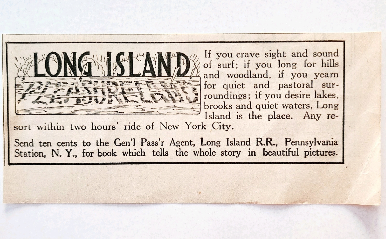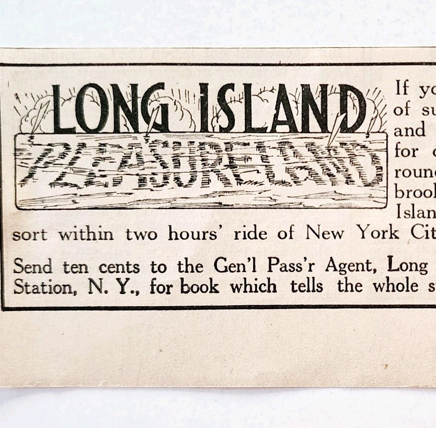 1917 Long Island Pleasureland NYC Advertisement WW1 Era Railroad Penn NY E98G