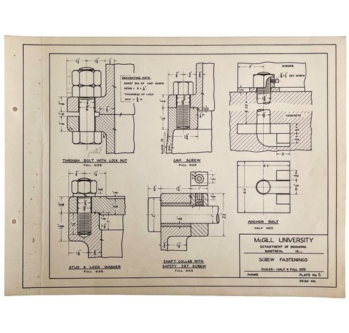 McGill University Screw Fastenings 1965 Mechanical Drawing Print Engineer DWEE12