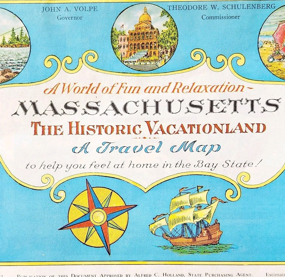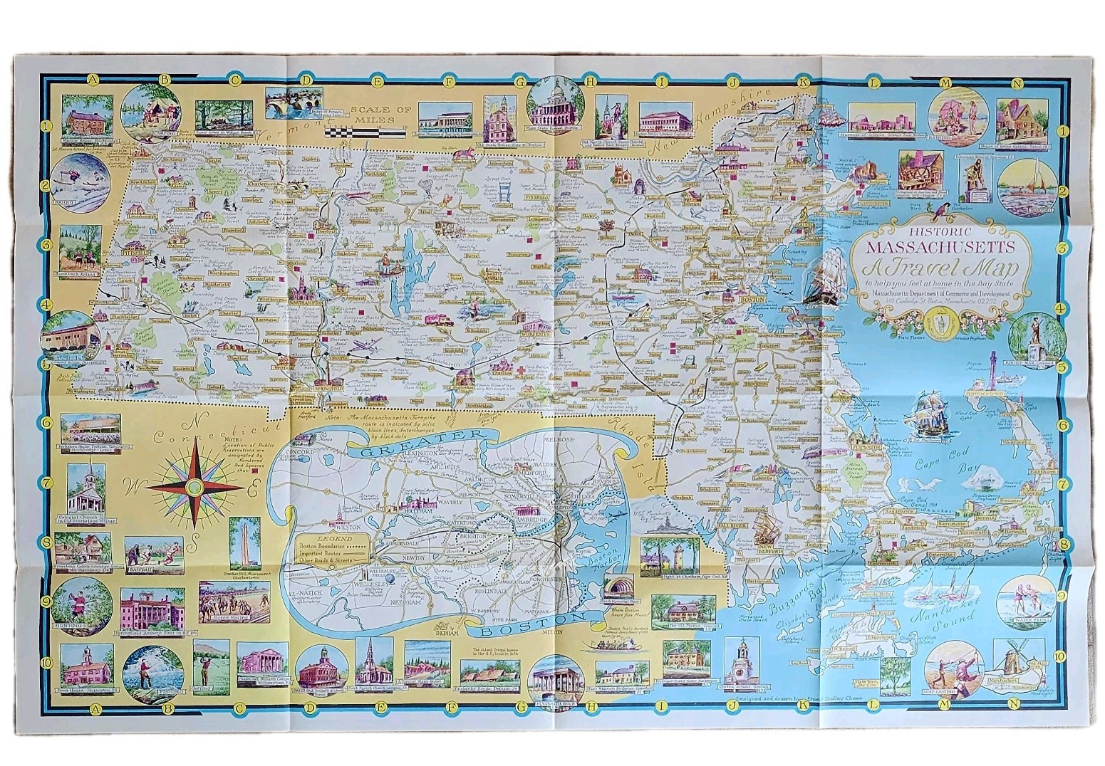 1970s Historic Massachusetts Travel Map and 43 similar items