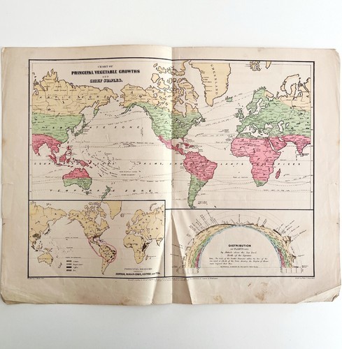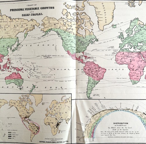 Map Of The World 1884 Vegetable Plant Growth Coffee Victorian Lithograph DWP3D