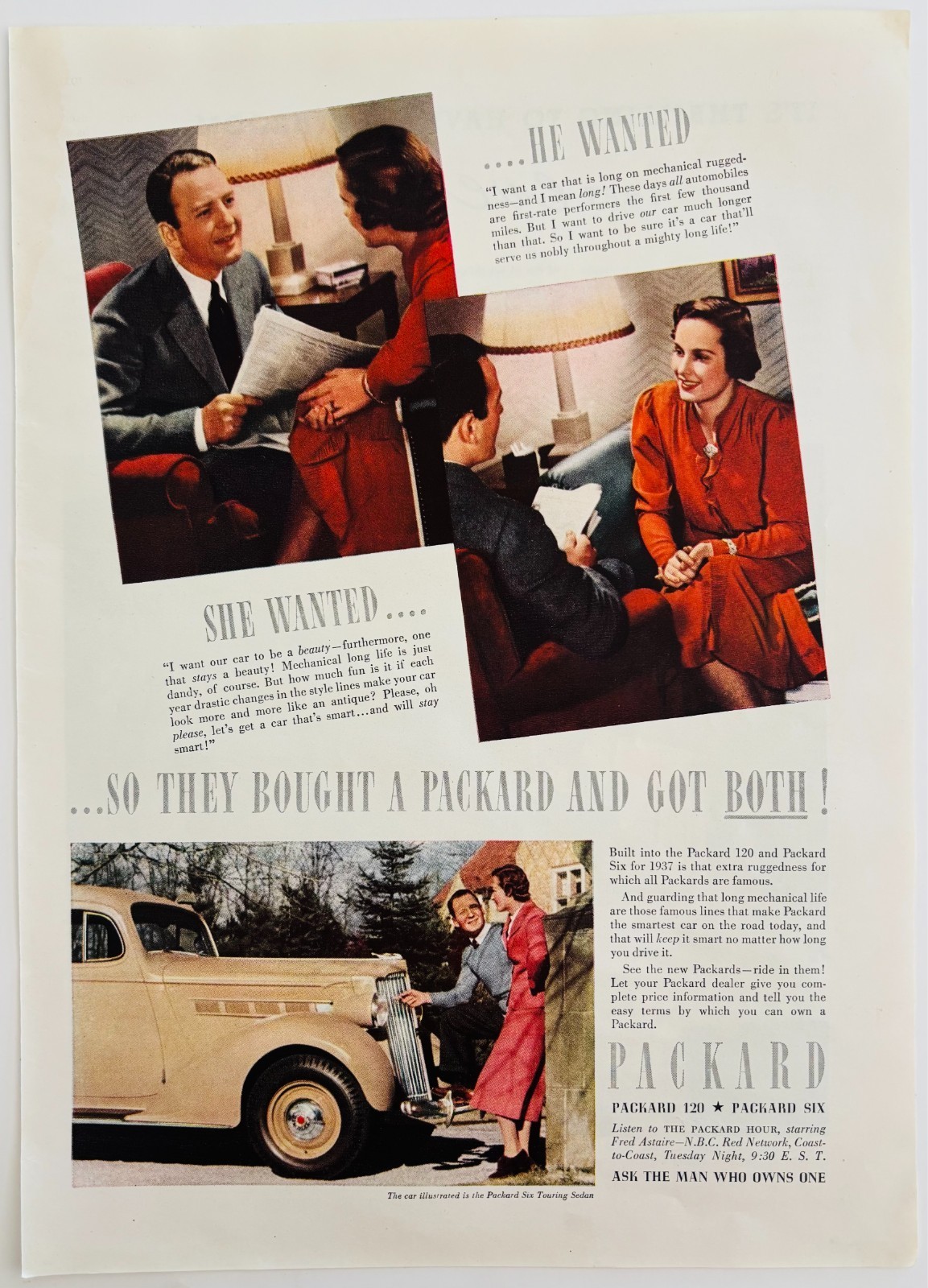 1937 Packard 120 And Six Advertisement Automobilia He Wanted She Wanted E90G3