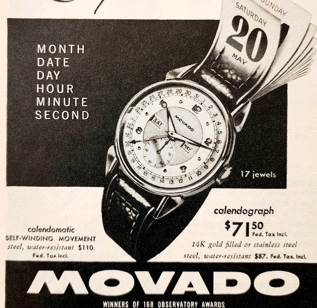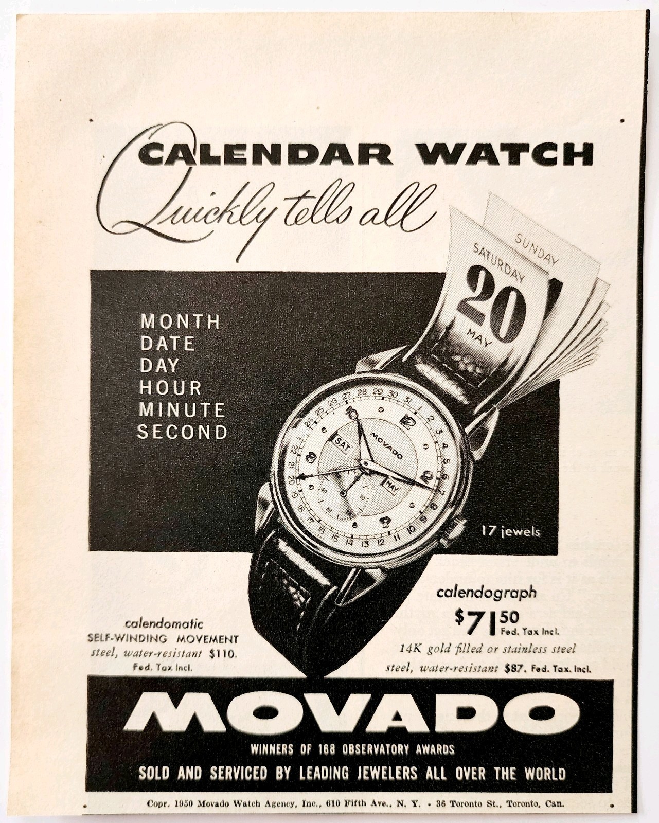 1950 Movado Calendograph Watch Advertisement and 49 similar items