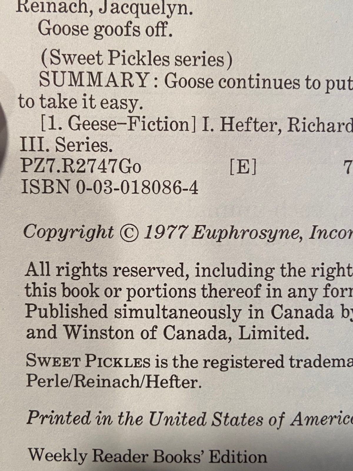 1977 Sweet Pickles Hardcover Goose Goofs Off and similar items