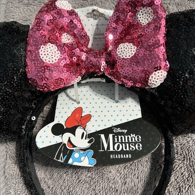 Disney Minnie Mouse Headband Ears Pink Polka Dot Bow Sequins NWT