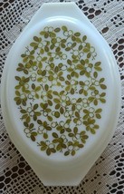 This sale is for a Vintage Pyrex divided dish with verde olive design on white glass lid