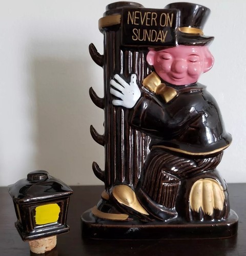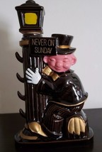 Vinrage "Never On Sunday" Ceramic Hobo Lamp Post Empty Liquor Decanter ~ 9" Tall