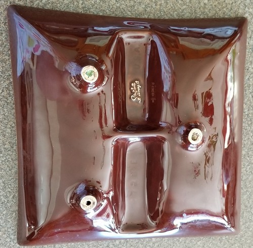 Vintage 9.5" Square ~ Statford Coring, O. ~ Brown & White ~ Ceramic Ashtray