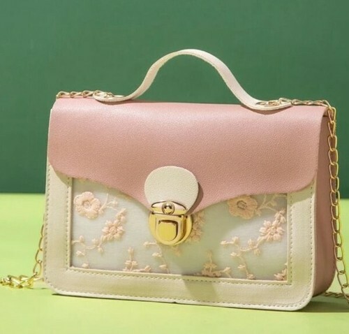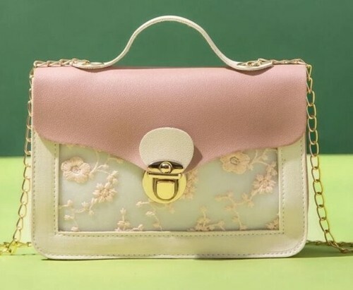 Crossbody Purse ~ 5.1" x 7.3" ~ Floral ~ Embroidered Pattern ~ Pink & Ivory