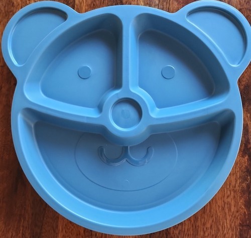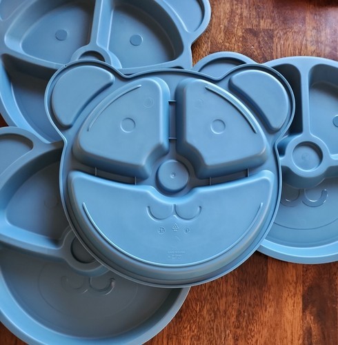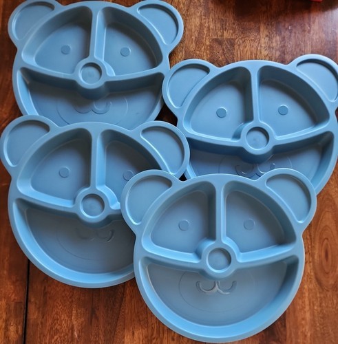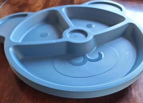 Your Zone ~ 4-Piece Set ~ Kids Dinnerware ~ Blue Plastic ~ 9.5" Bear Plates