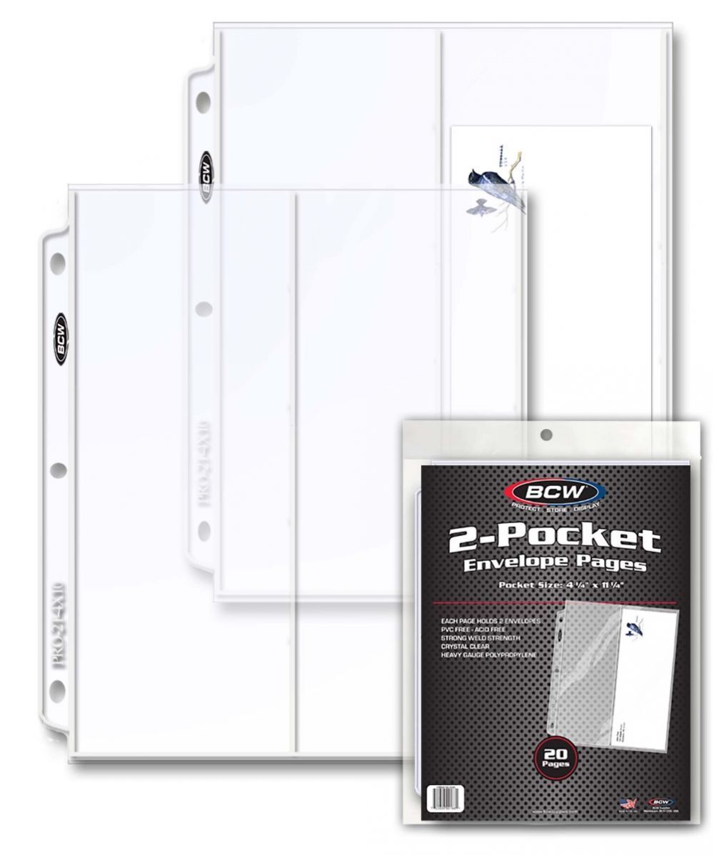 Pack of 20 BCW 2-Pocket 4x10 Envelope Pages (1-PRO2T-4X10-20)
