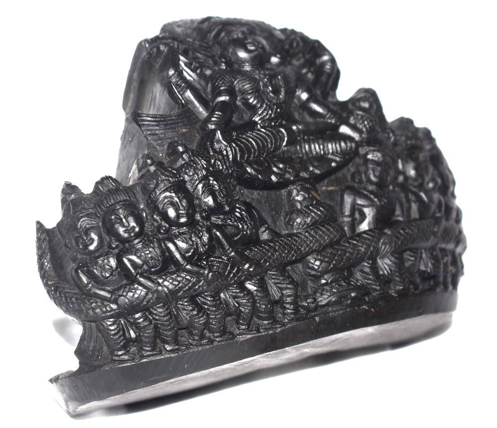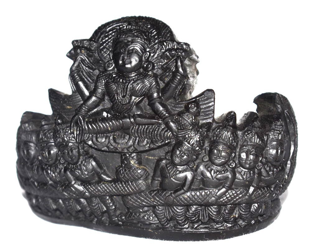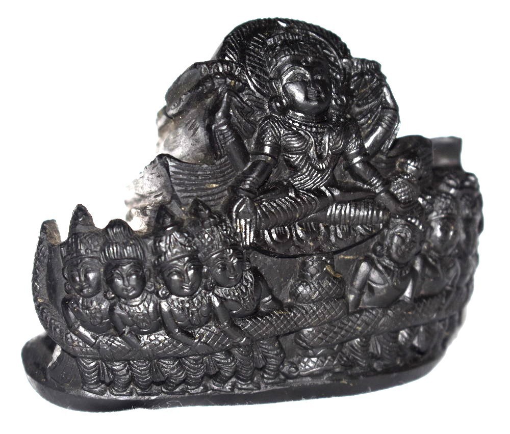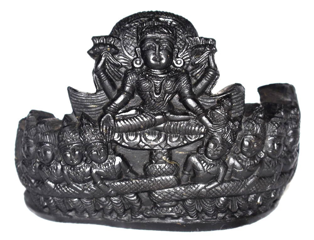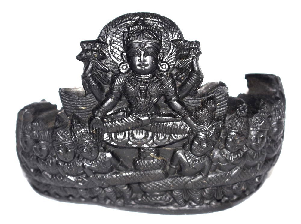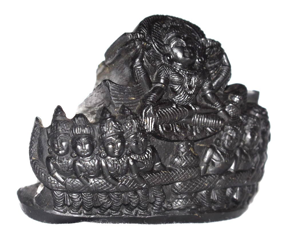 Product Name : Samudra Manthan Laxmi Murti on Golden Sudarshan Shaligram / Sagar Manthan Murti / ShirSagara Manthana On Shaligram