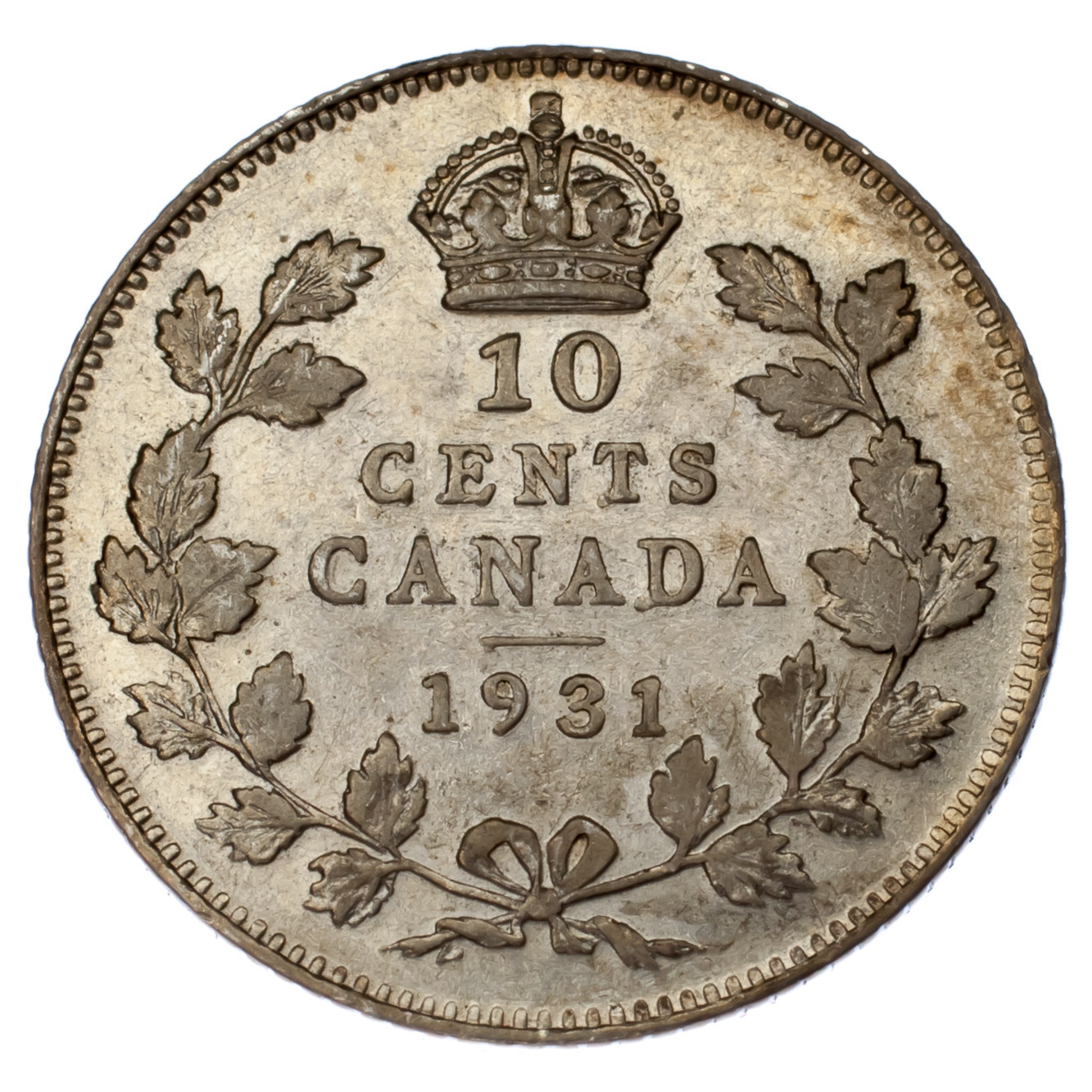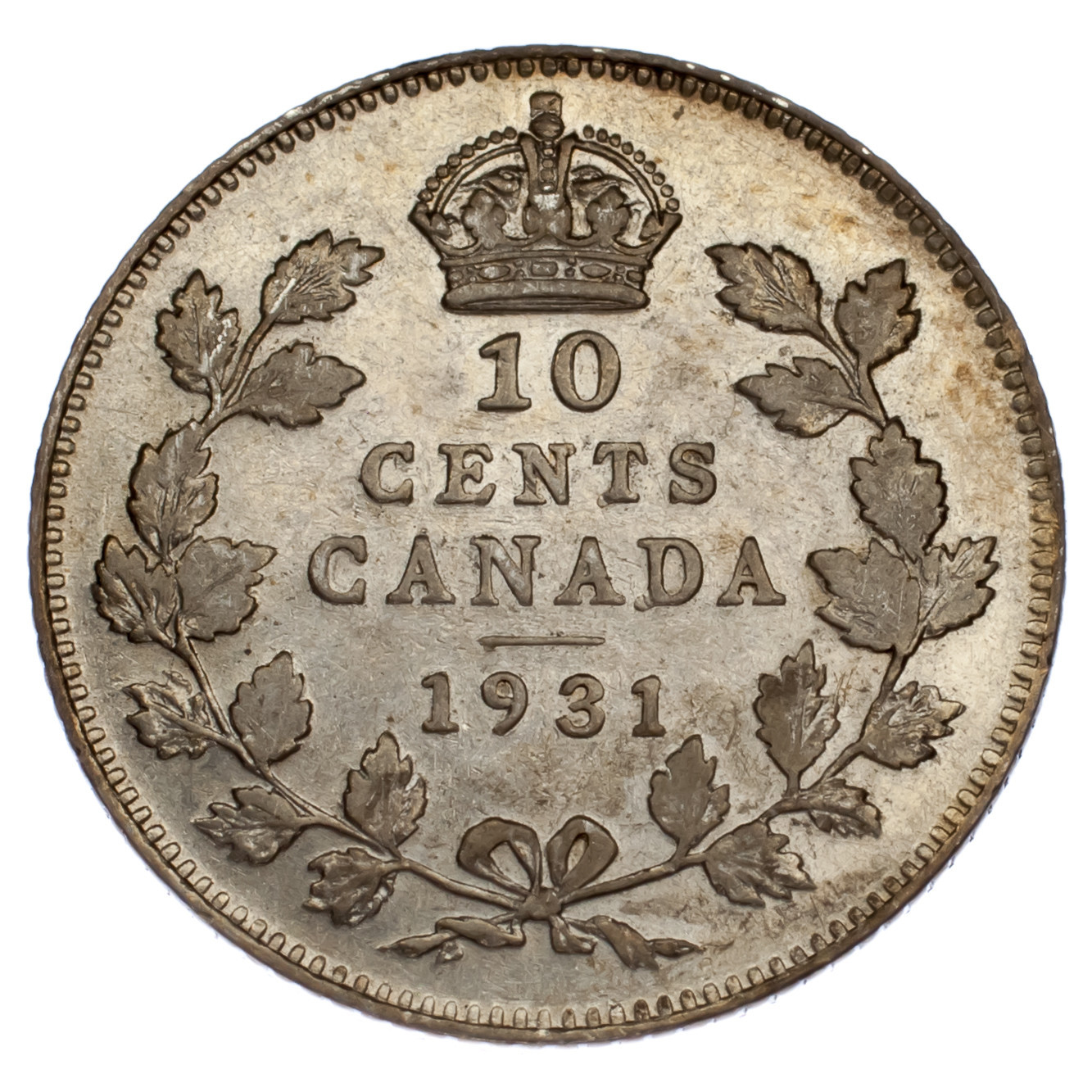 1931 Canada 10 Cents Piece D'Argent En Etat XF+ KM #23a