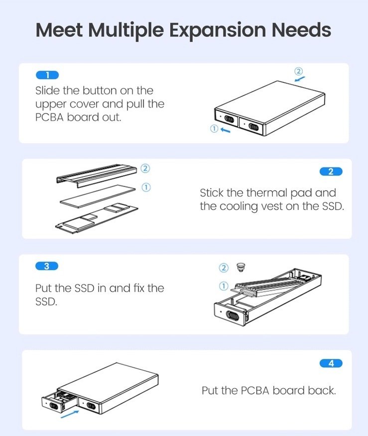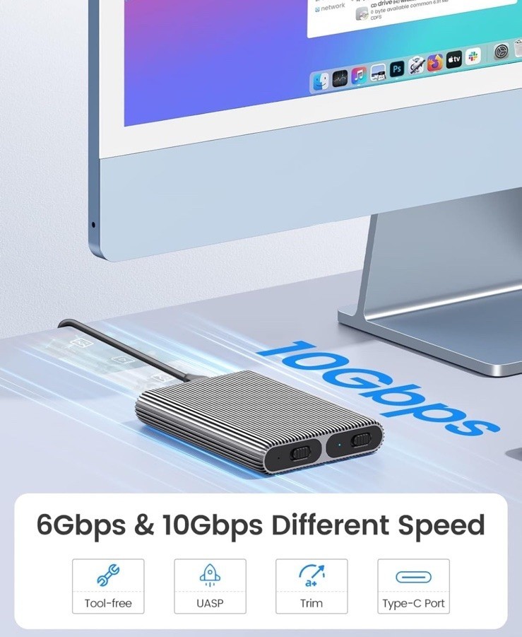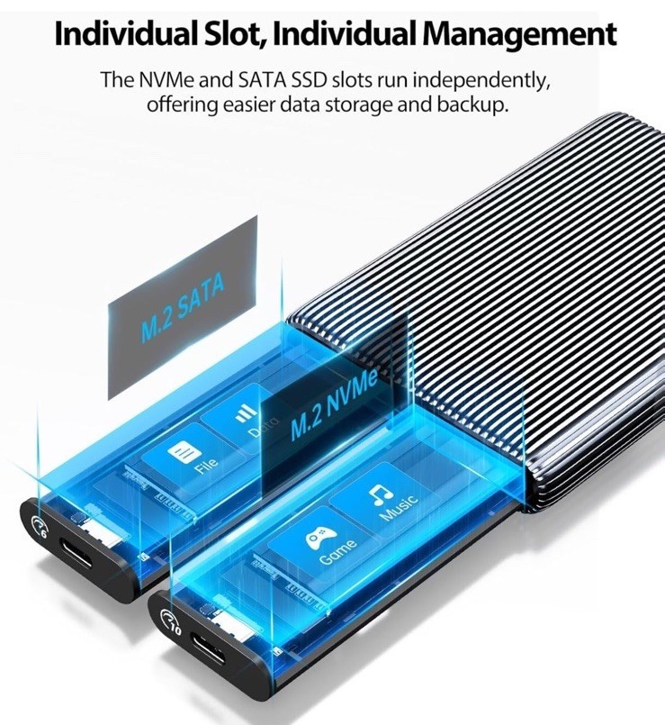 ORICO Dual M.2 NVMe SSD Aluminum USB3.2 Gen2 10Gbps, M.2 Type-C Docking