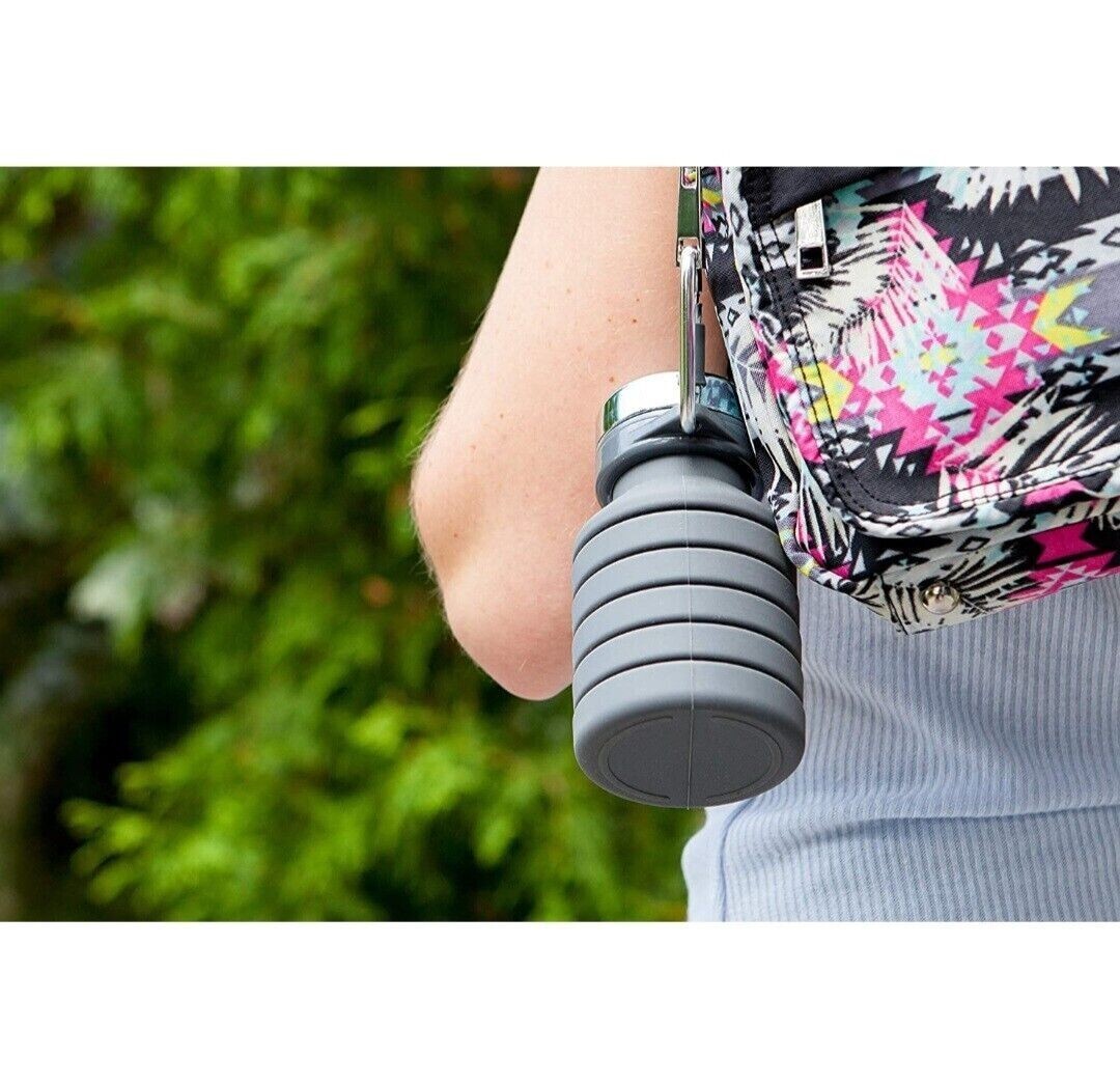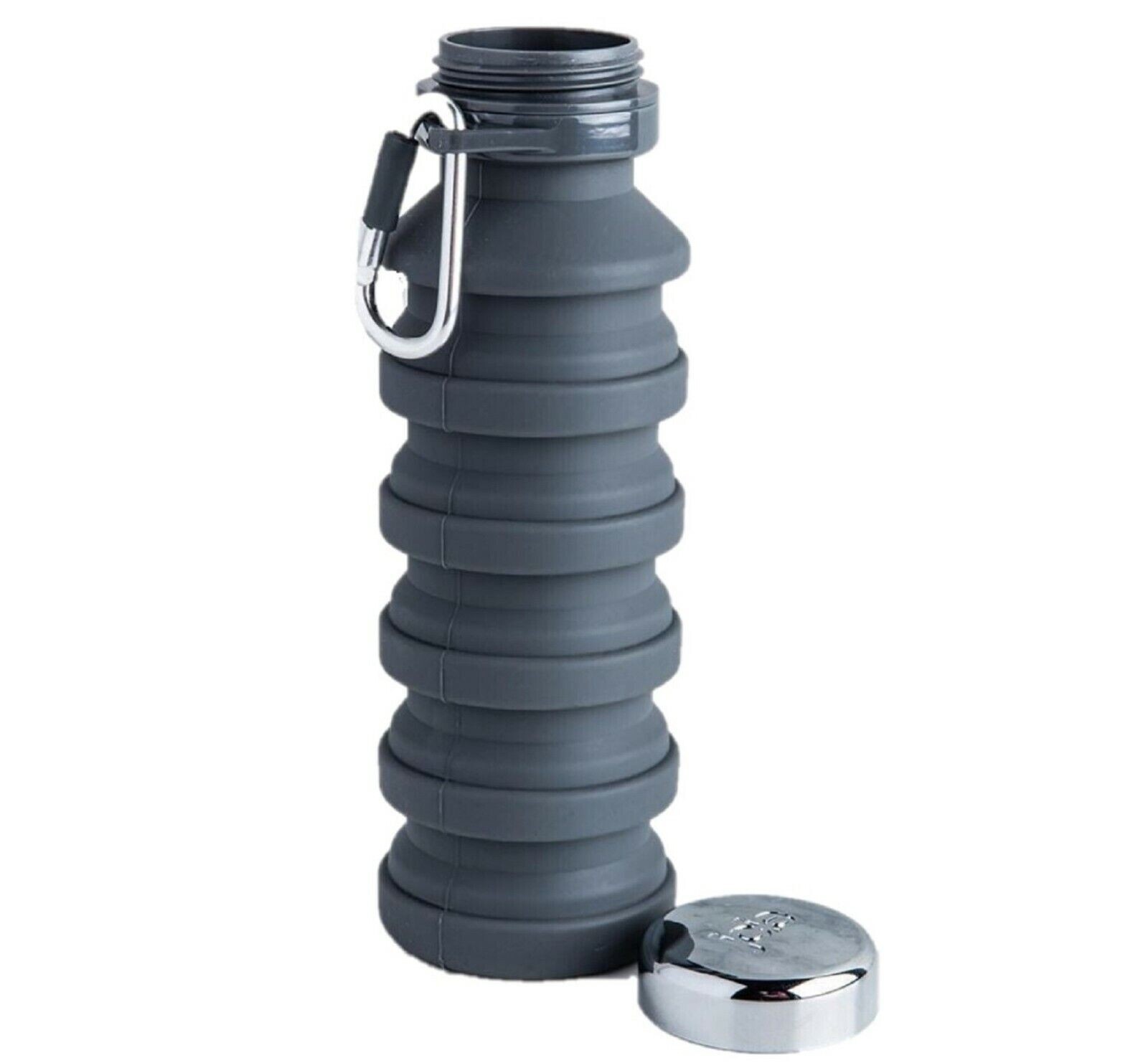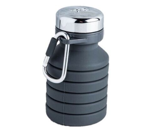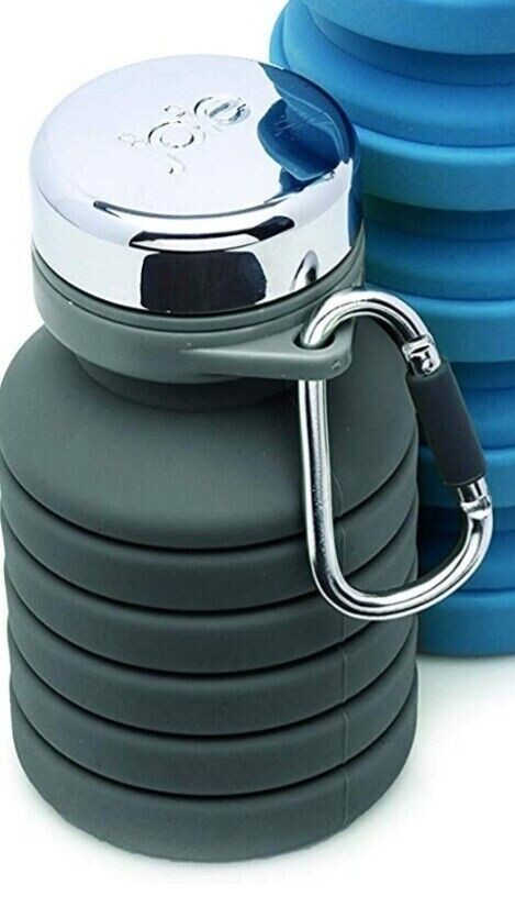 Joie Collapsible Water Bottle On The Go - Gray Silicone - BPA Free - Reusable - 16oz.