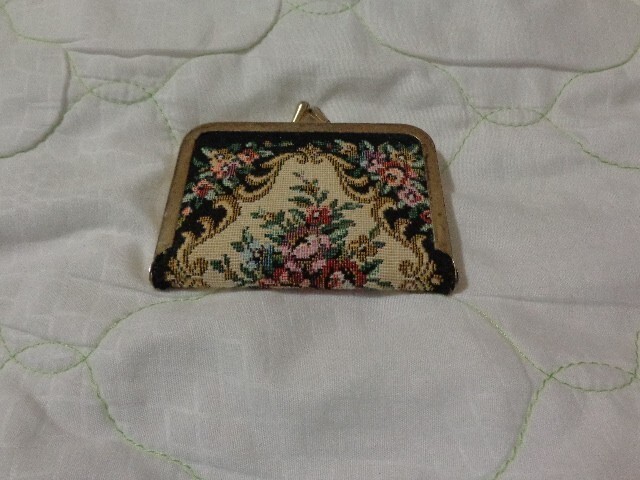 Vintage wallet style travel size sewing kit Black and white tapestry