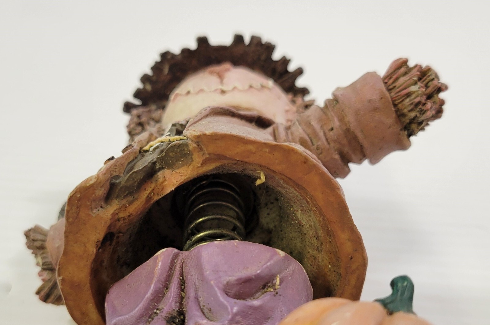 VV) Halloween Fall Scarecrow Pumpkin Resin Bobble Figure Decoration 6.5"