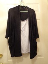 Women's AGB Black Gray Tunic Sweater Attached Cardigan Top 3/4 Sleeve Pockets L