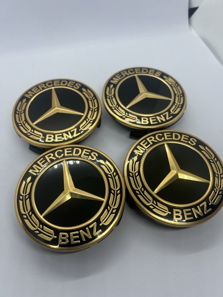 4x Mercedes Gold Alloy Wheel Centre Hub Caps 75mm A B C E S