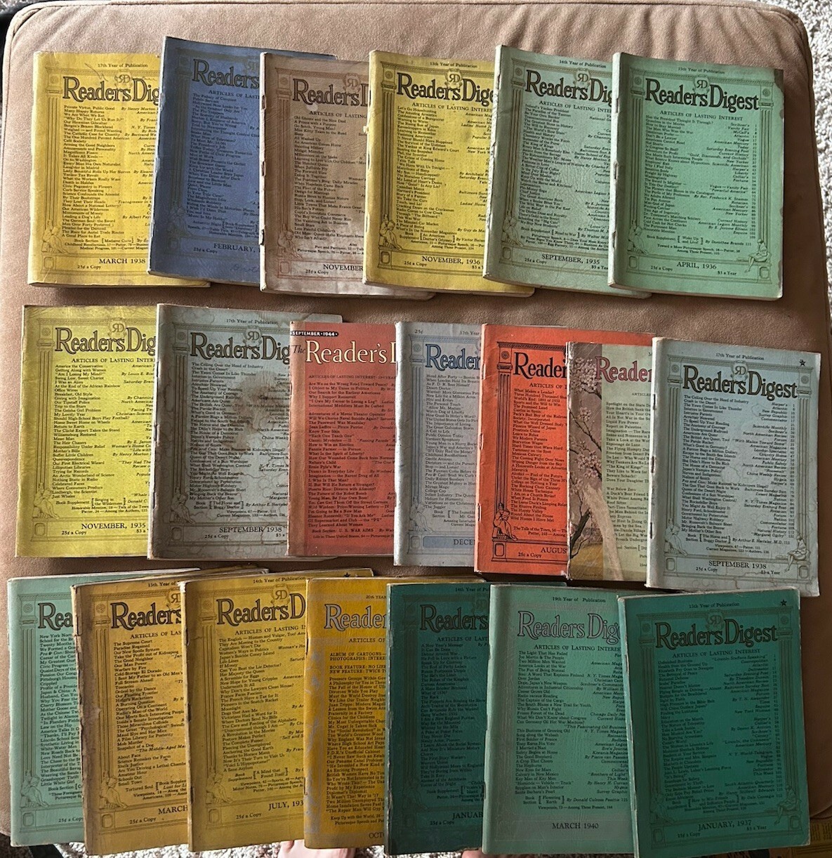 READER'S DIGEST MAGAZINES LOT of 20 1930's 1940's