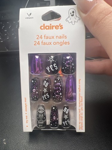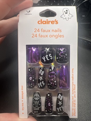 24pc Claire’s Fake False Press On Fortune Teller Purple Black Long Coffin Nails