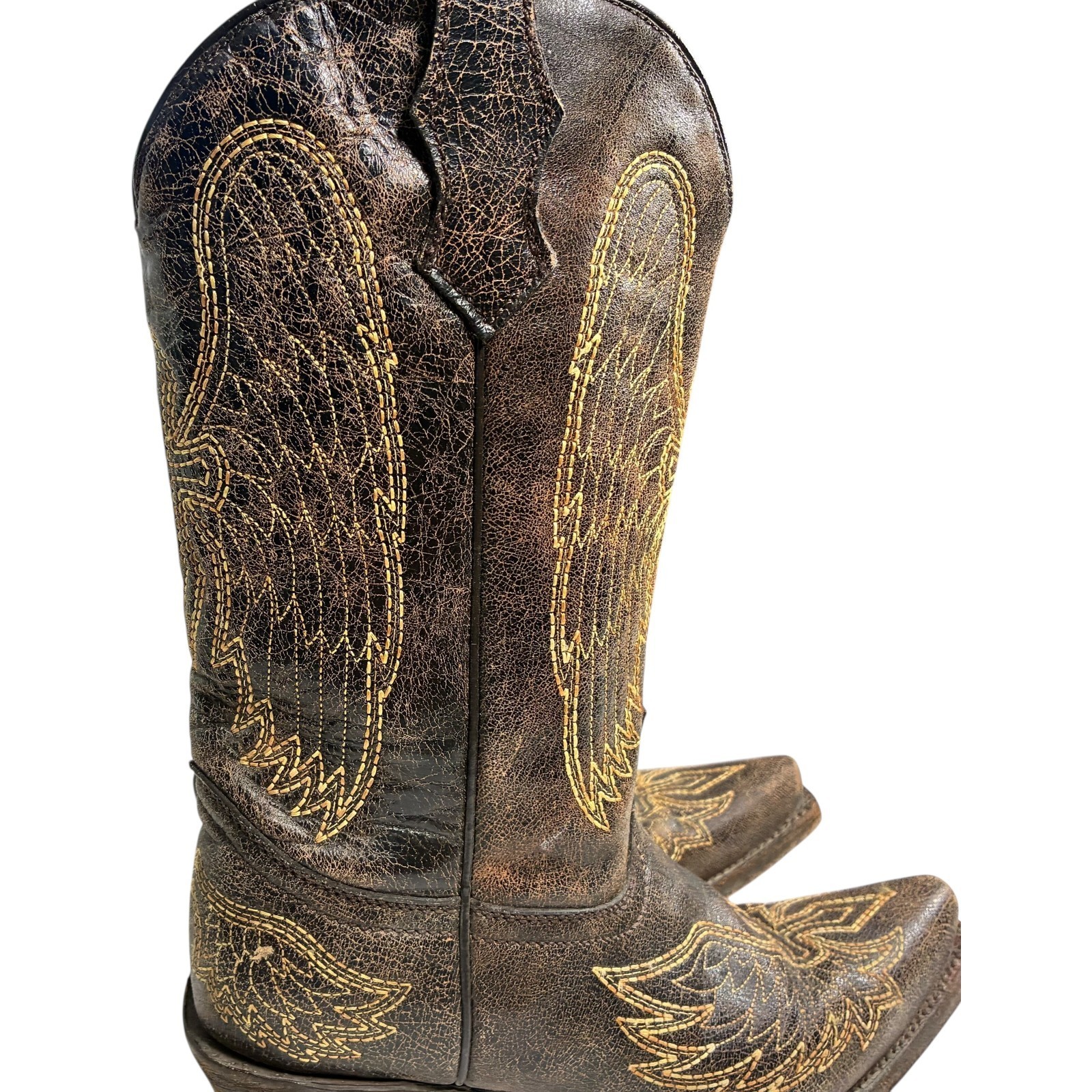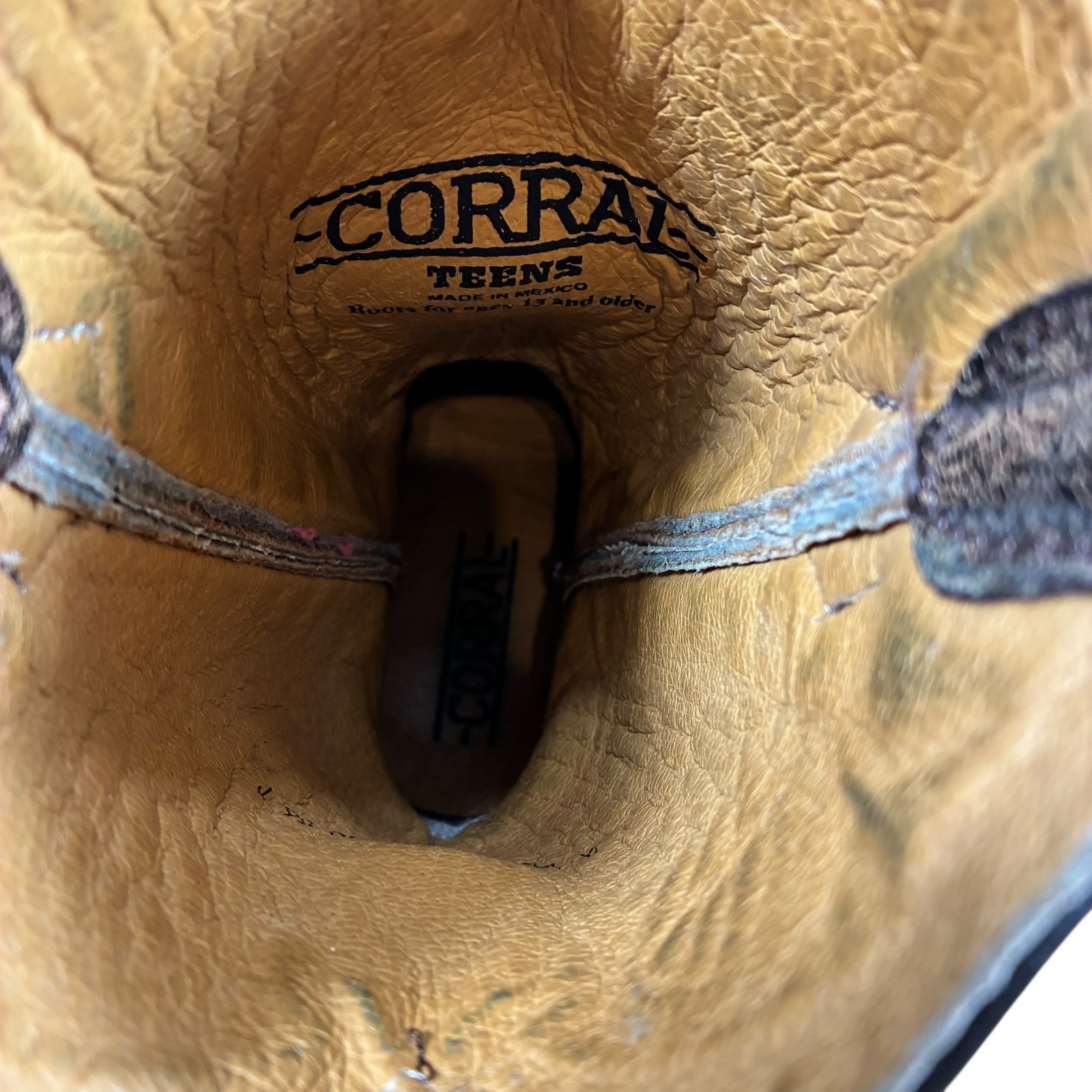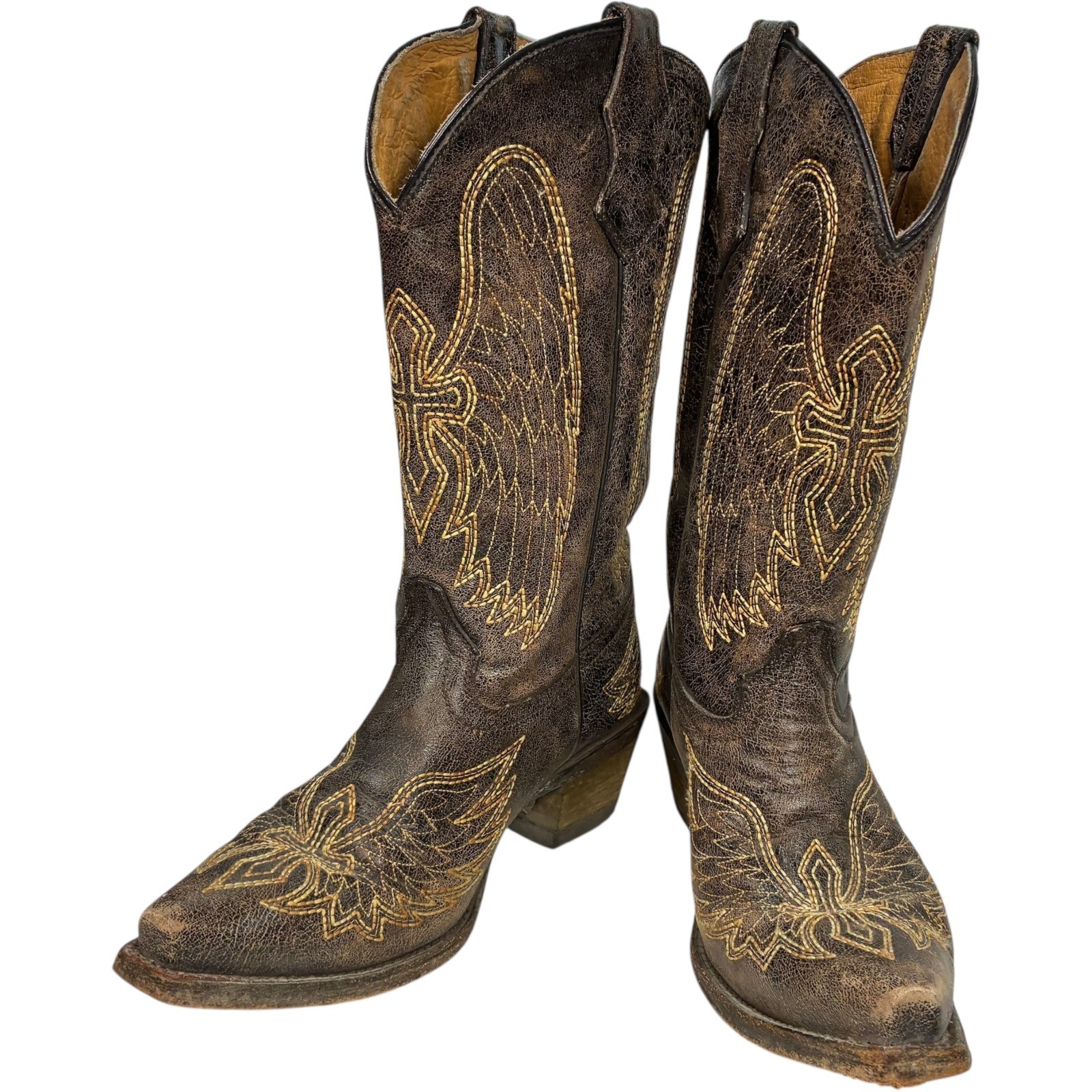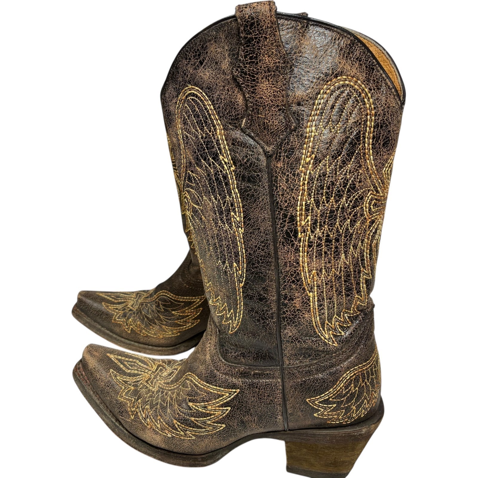 Corral Girl's A1028 Wing and Cross Western Boot Brown/Gold size 3