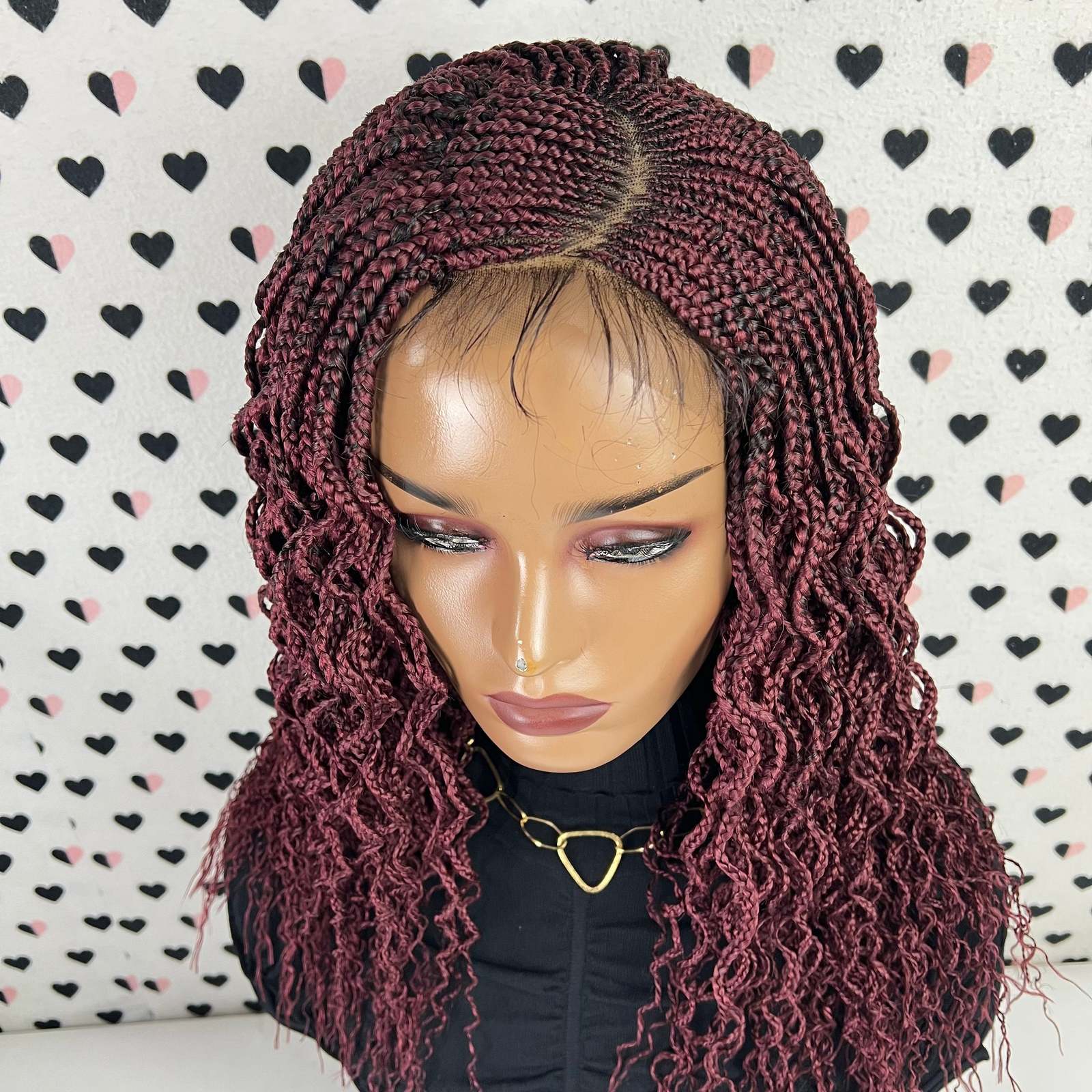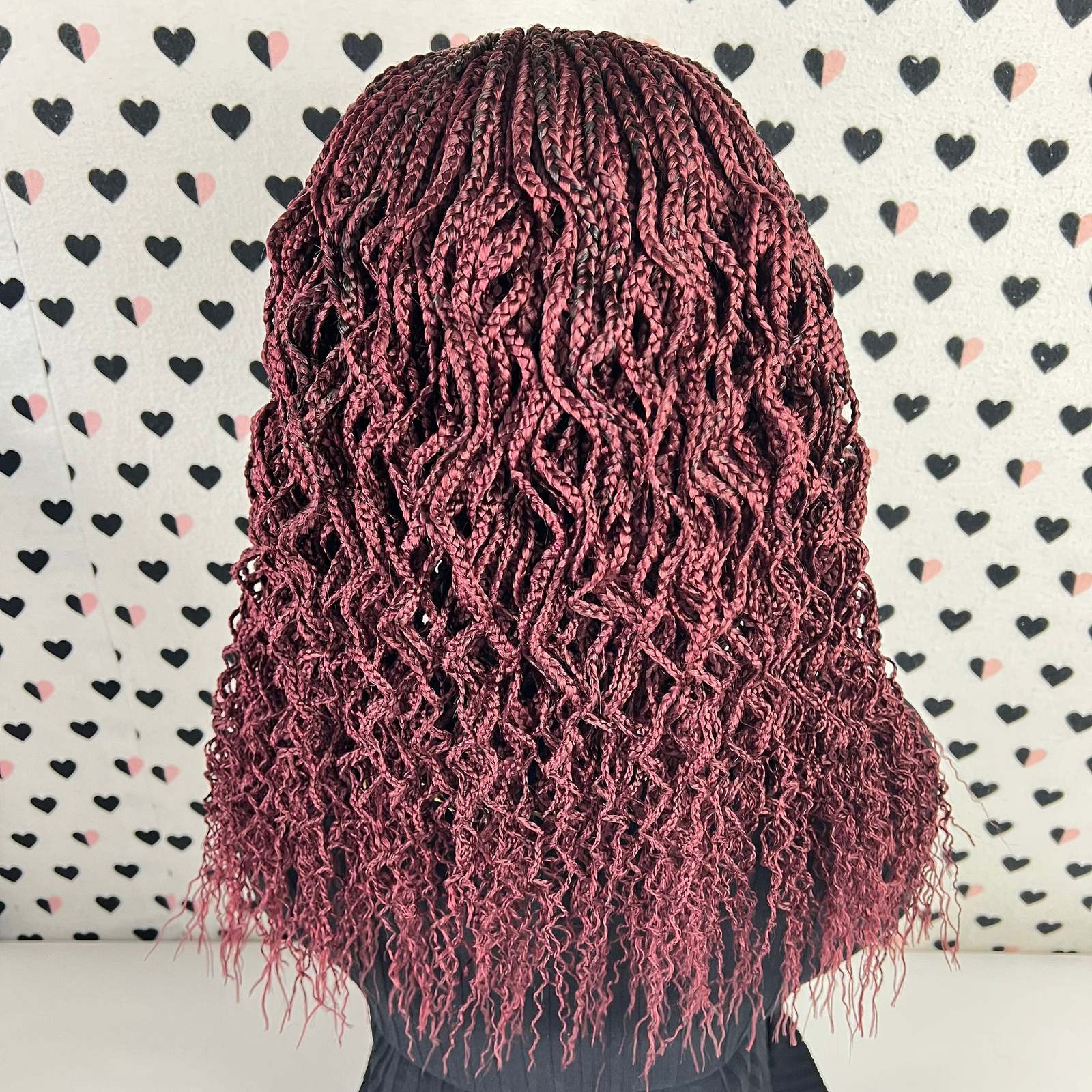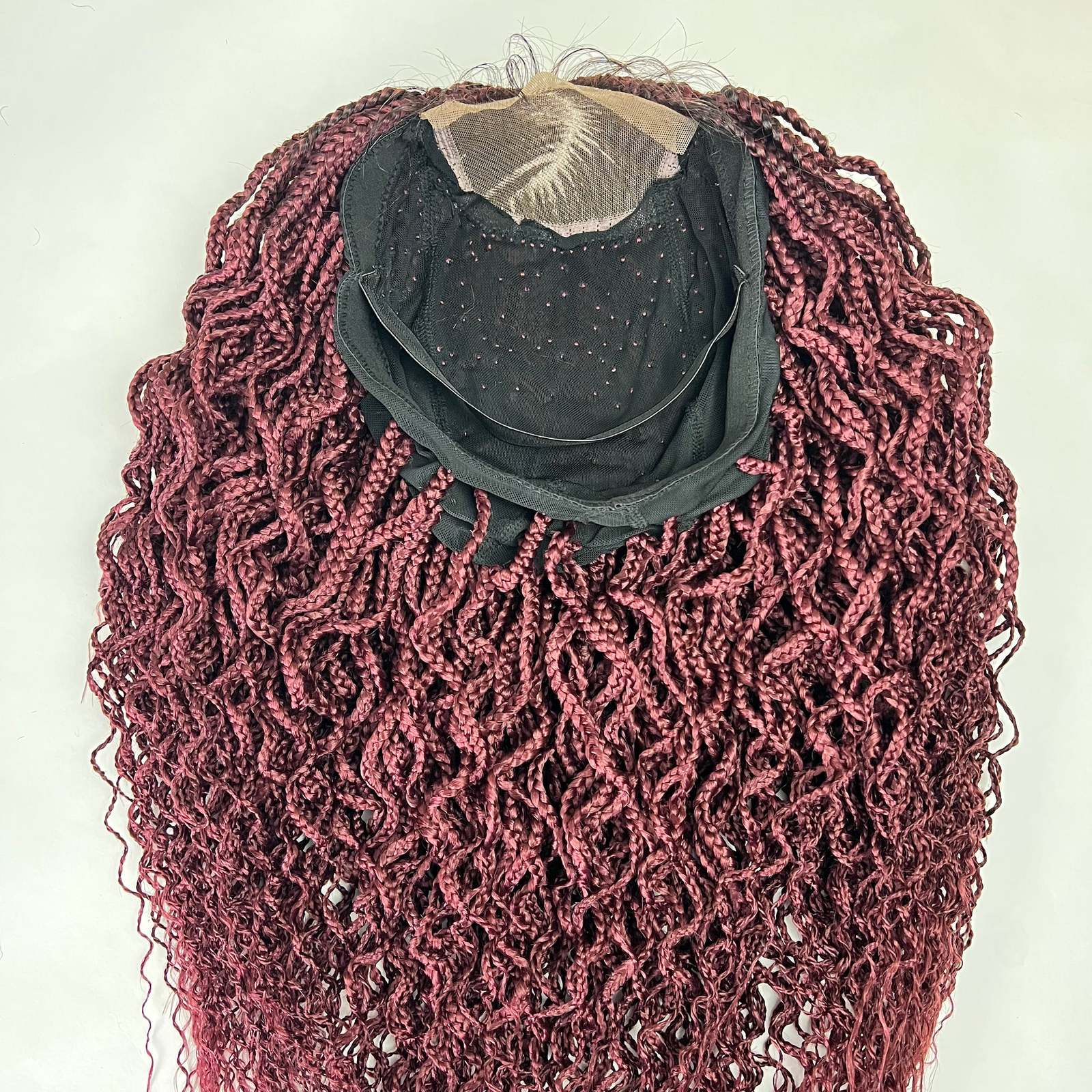Cornrows Curly Box Braided Wigs For Black Women Lace Closure Wig Goddess Boho Braid Burgundy Red.