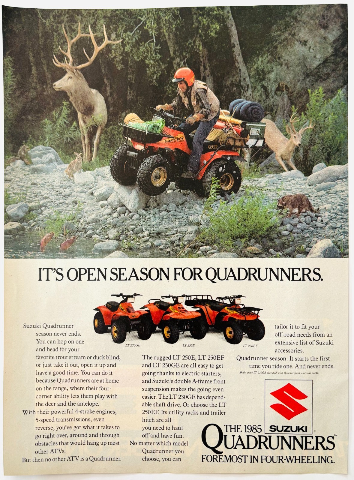 1985 Suzuki Quadrunners ATV All Terrain Advertisement Vintage Outdoor DWU17F