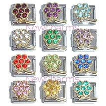 Set of 12 Big Flower Birthstone Italian Charms - One Dozen 9mm Links Jan - Dec