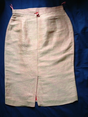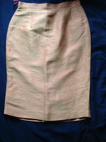 LOUIS FERAUD Linen Silk Blend Gold Peach Pink Lined Pencil Skirt SZ US 10