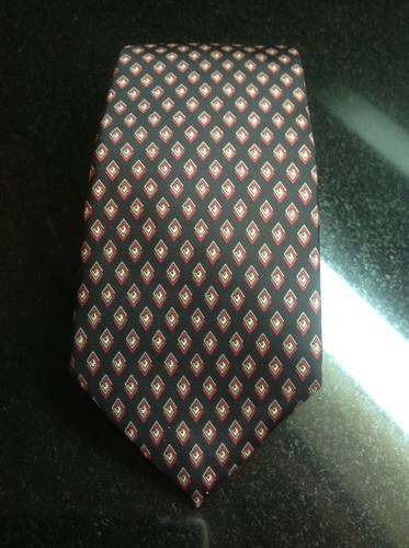 Authentic LN Christian Dior 100% Black Silk Tie w/ Red and Gray Diamond Print