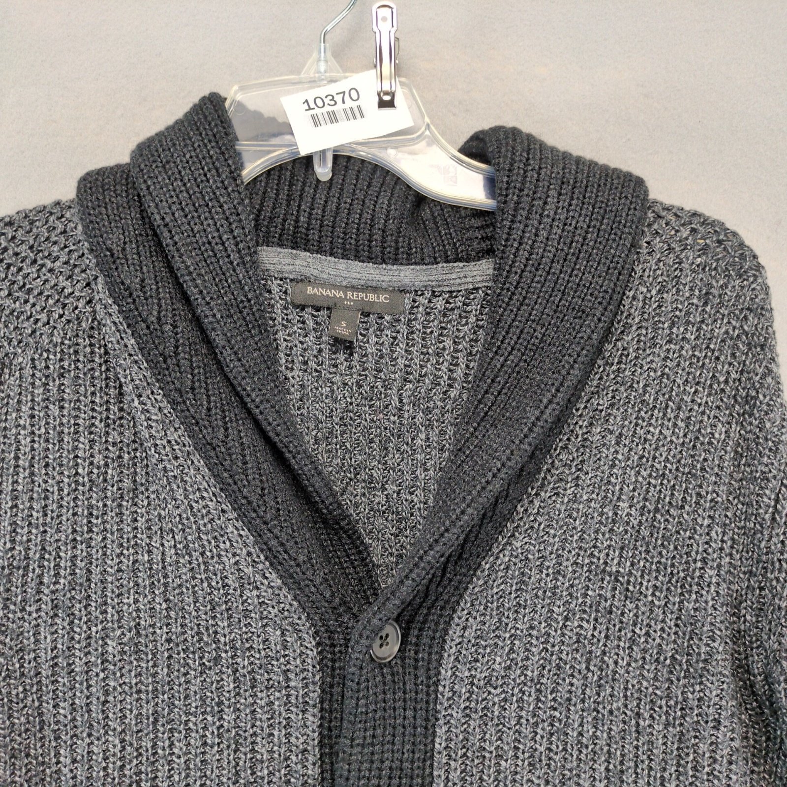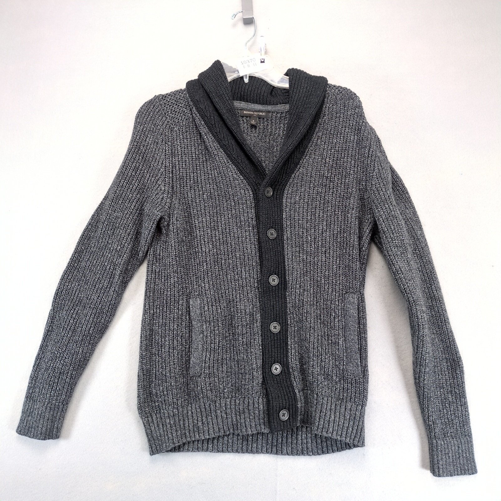 Banana Republic Gray Black Cardigan Sweater Men's S Button Close Pockets Preppy