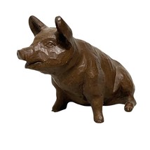 Red Mill Mfg Handcrafted Pig Figurine 5” Resin & Crushed Pecan Shell USA Vintage