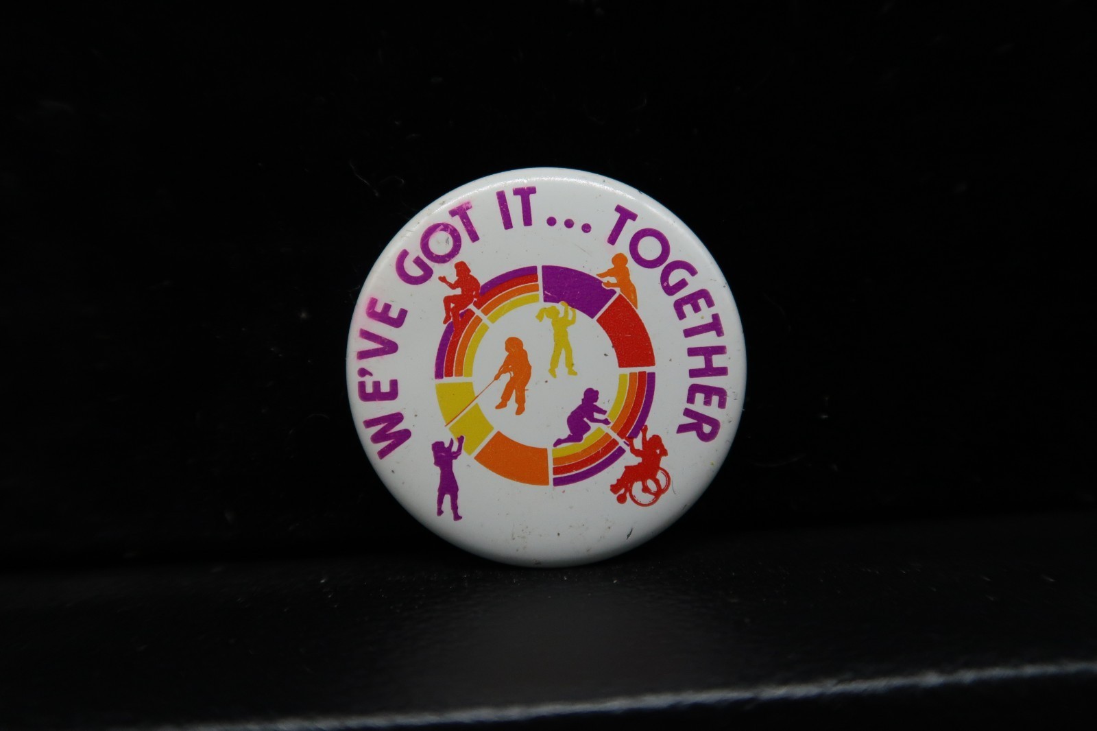 Vtg GSA Girl Scout Inclusion Button Colorful Unique HTF