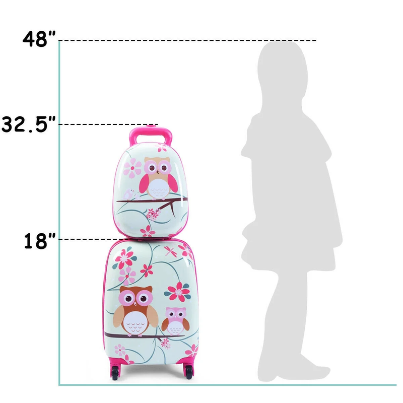 This adorable luggage set including a cute animal shaped suitcase and a matching backpack is perfect for traveling. Help your child learn how to prepare themselves for travel. This set includes a 16'' Trolley Suitcase with multi-directional wheels and ergonomically designed telescoping handles which will add much convenience to the trip and a 12'' backpack which comes with straps for easy to carry. It is perfect to take this luggage set while your kid is enjoying a holiday.