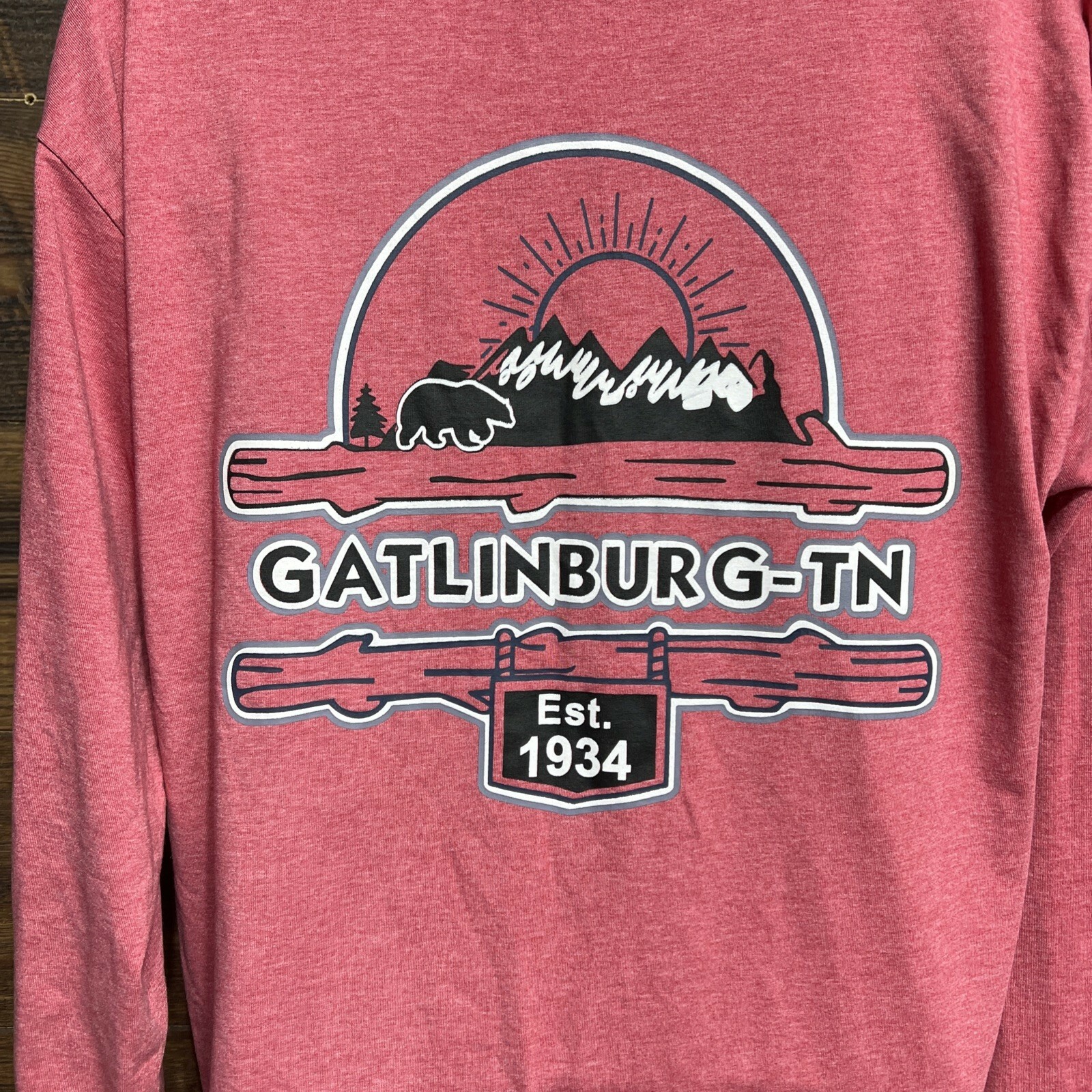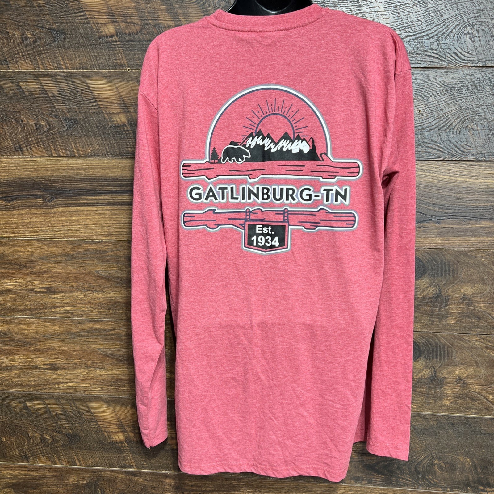 Gatlinburg TN Long Sleeve T-Shirt Size L Pink Jasper Bear Mountains Graphic Tee