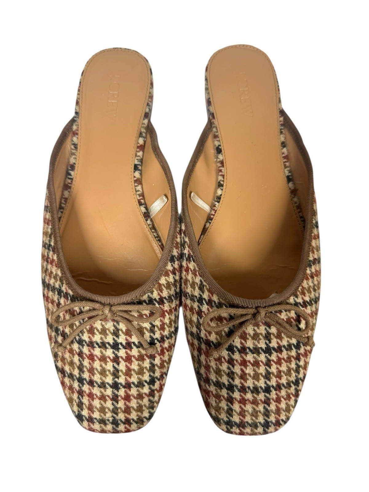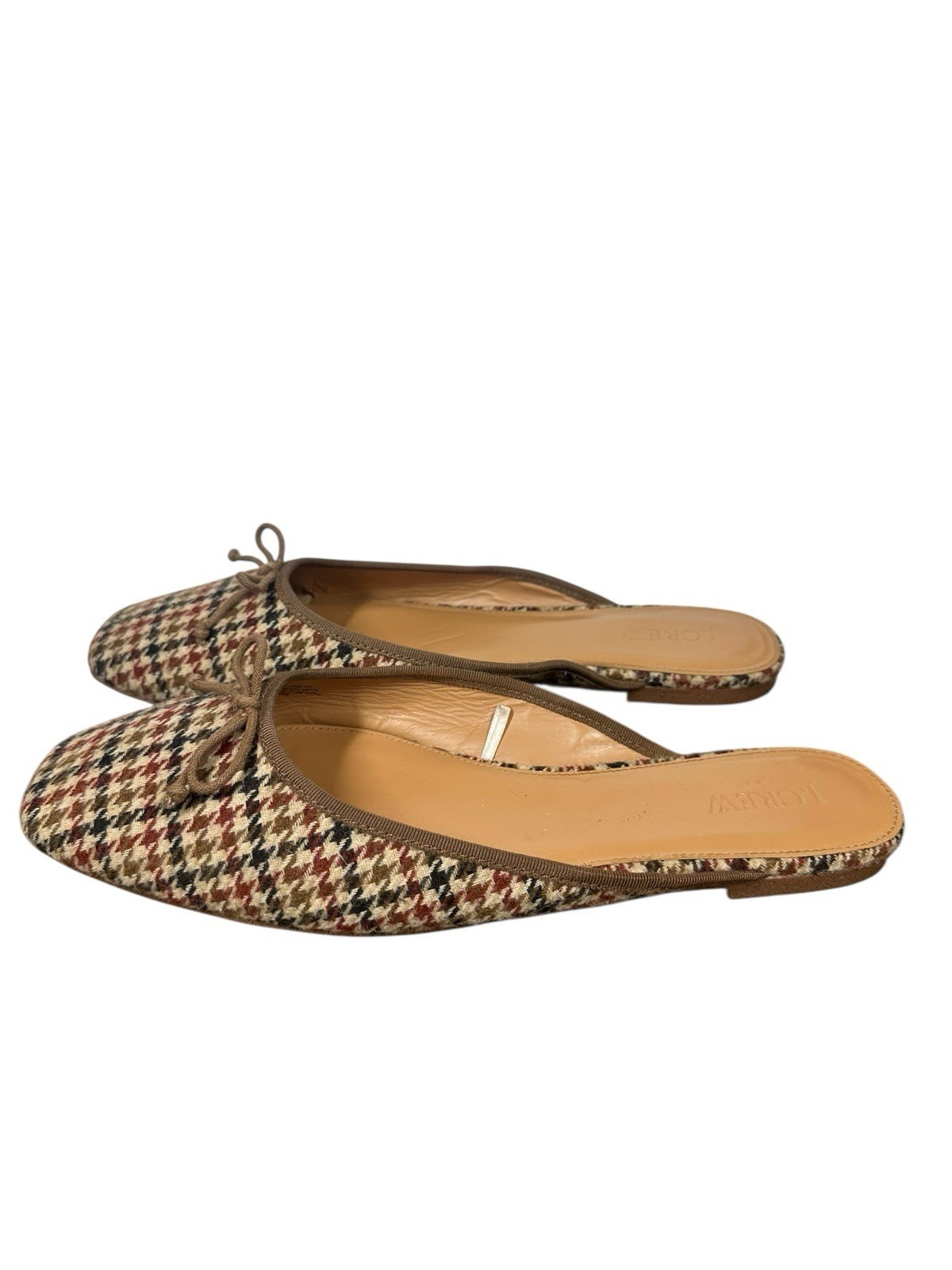 Womens J Crew Houndstooth Plaid Mules w/Bow Slip On Flats Brown Black Beige 10